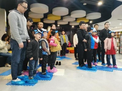 小朋友和家長們站在“浮冰”上體驗溫室效應(yīng)帶來的改變