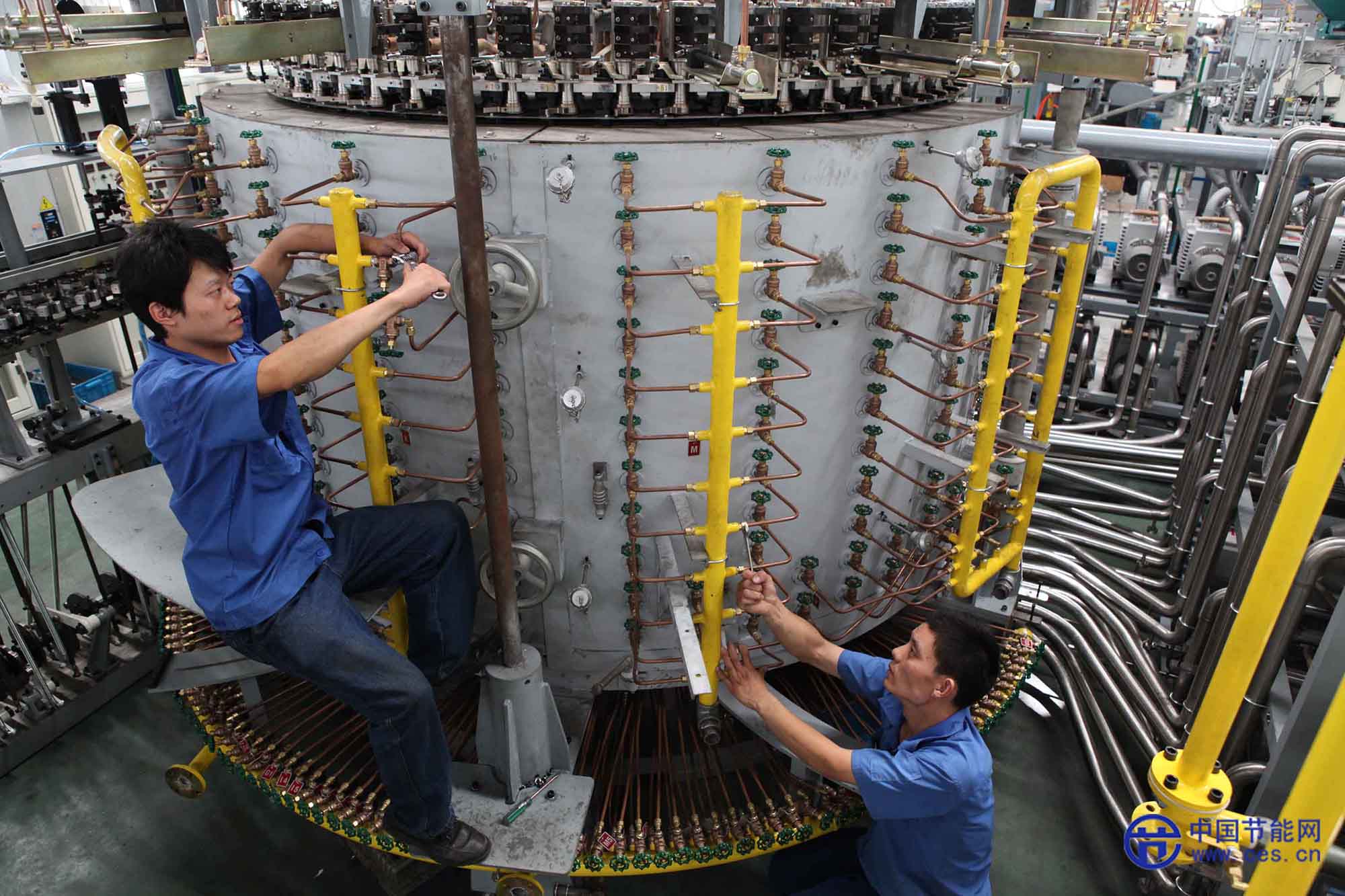 圖二為7月9日,位于博愛縣工業(yè)集聚區(qū)的河南力亞光源機(jī)械有限公司里,員工正在組裝熒光燈生產(chǎn)線上的排氣爐銅管。