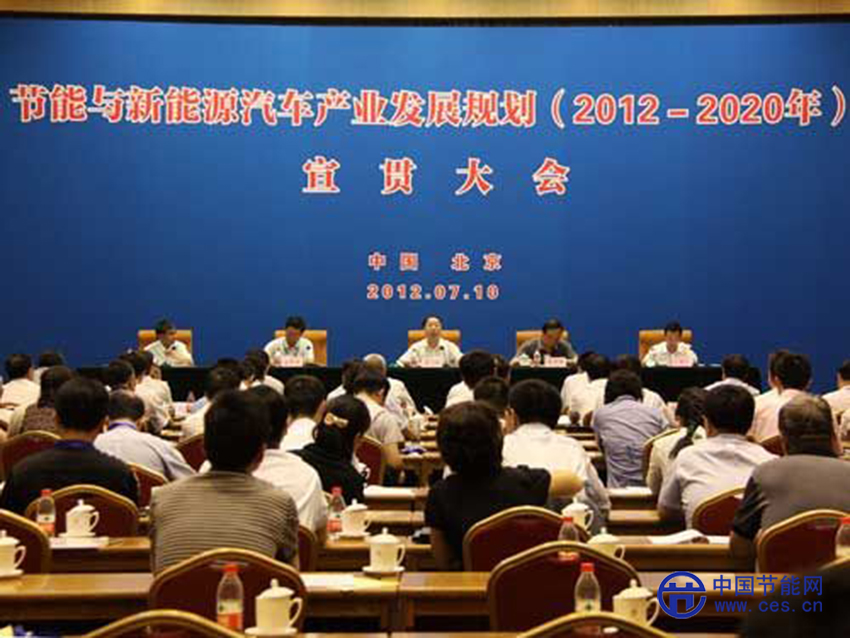 2012年6月28日,國(guó)務(wù)院印發(fā)《節(jié)能與新能源汽車產(chǎn)業(yè)發(fā)展規(guī)劃(2012~2020年)》。7月10日,工業(yè)和信息化部會(huì)同發(fā)展改革委、科技部、財(cái)政部組織召開宣貫會(huì)議。各省、自治區(qū)、直轄市、計(jì)劃單列市工業(yè)和信息化主管部門,國(guó)內(nèi)外主要汽車企業(yè),電池、電機(jī)等零部件及電力供應(yīng)企業(yè),相關(guān)行業(yè)組織、研究機(jī)構(gòu)、高等院校,以及十多家主要新聞媒體等參加了會(huì)議。