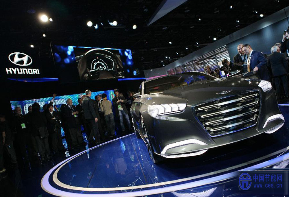 14日,在美國底特律舉行的2013北美車展上,韓國現(xiàn)代汽車公司在發(fā)布會上展示勞恩斯HCD-14概念車。