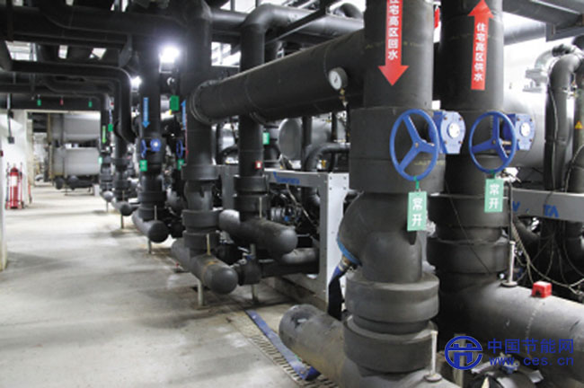 在馬欄廣場(chǎng)的益嘉廣場(chǎng)地下的原生污水源熱泵機(jī)房,管路四下縱橫,各種泵機(jī)密布。這里雖然沒有一臺(tái)鍋爐,但通過截流未經(jīng)任何處理的城市污水,經(jīng)過5臺(tái)污水源熱泵置換,就能給建筑面積18萬多平方米的商場(chǎng)和住宅供熱,每年可節(jié)約標(biāo)準(zhǔn)煤約2000噸。