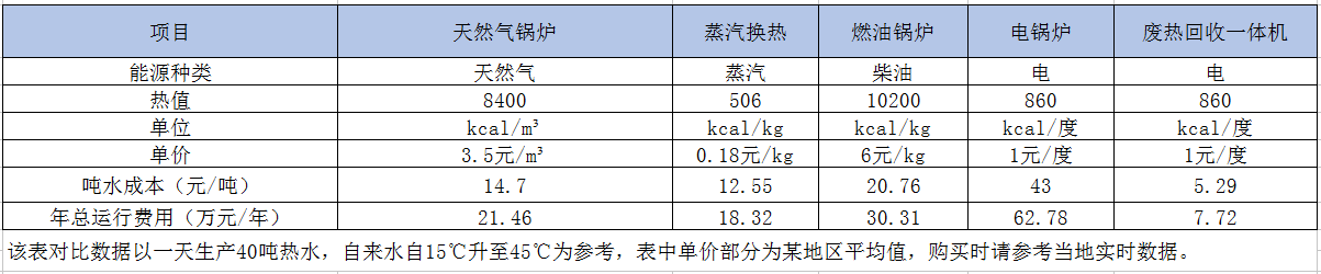 目前國家全面整治并取締小型燃煤鍋爐,各種新型的熱水系統(tǒng)應運而生,多數(shù)采用空氣源熱泵熱水系統(tǒng),但該系統(tǒng)在冬季受室外溫度變化影響波動較大,節(jié)能效果不理想,能耗較高。經測算,同種水溫需求情況下,熱回收一體系統(tǒng)比空氣源熱泵系統(tǒng)年運行費用節(jié)約一倍。