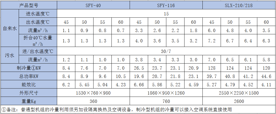 * 機組可接受多路污水熱源,且可實現(xiàn)出水溫度在40℃-60℃之間的自由選擇;