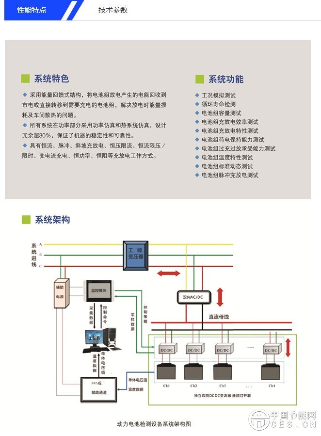 BSP系列檢測系統(tǒng)同樣也適用于對各種直流負載(不僅包括電池)進行性能測試,比傳統(tǒng)的電源系統(tǒng)提供更多的測試功能。BSP系列檢測系統(tǒng)利用電力設(shè)施的雙向特性(可發(fā)出和接受電能)來滿足負載單向和雙向的需求。電能不但可以從BSP傳輸?shù)截撦d,可以從負載傳輸回設(shè)備。BSP檢測系統(tǒng)可以直接將負載的電能在無需外部電阻負載的情況下饋送
