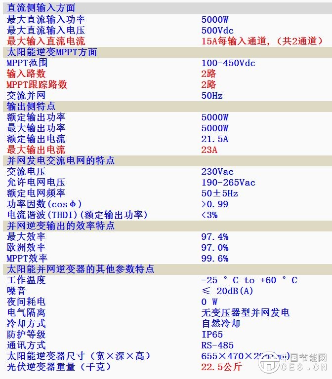 太陽能發(fā)電并網(wǎng)逆變器5000Wp的技術(shù)參數(shù)特點(diǎn)如下