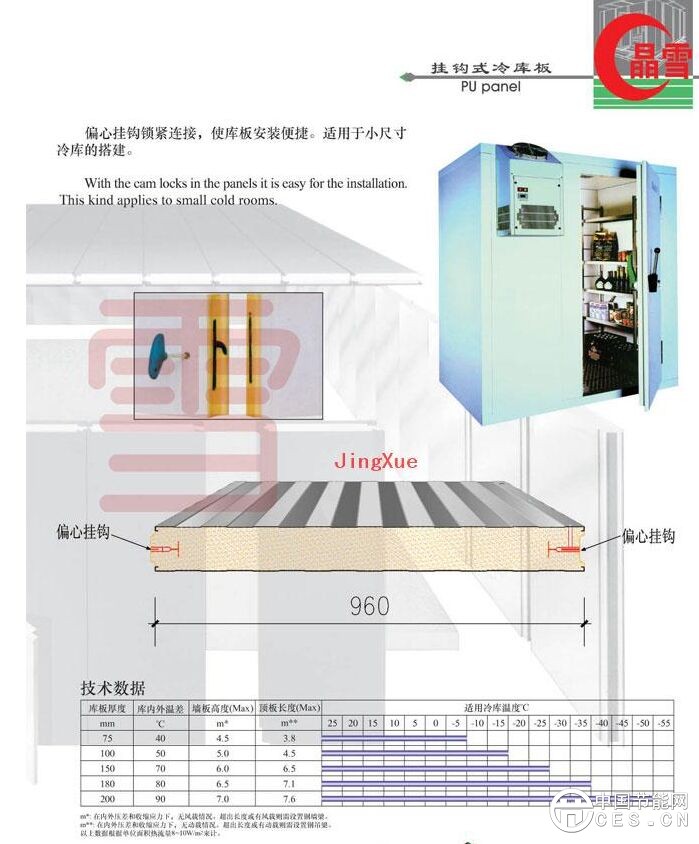 晶雪冷庫保溫板:偏心掛鉤鎖緊連接,使庫板安裝便捷。適用于小尺寸冷庫的搭建。最大的特點是幾何連接方式,并采用一個迷宮式的軟硬結(jié)合的密封條,確保了冷庫和低溫結(jié)構(gòu)中的高要求不滲透性,同樣也適用于潔凈和超潔凈的房間。