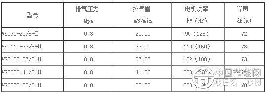 排氣壓力:0.8Mpa,排氣量:20.00 -50.00m3/min,電機功率范圍:90-250 kW