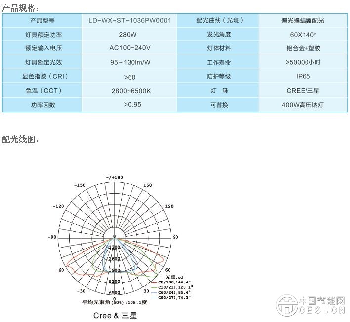 4.偏光蝙蝠翼配光,光利用率高,更適合道路照明光學(xué)要求比,比高壓鈉燈節(jié)能60%以上;