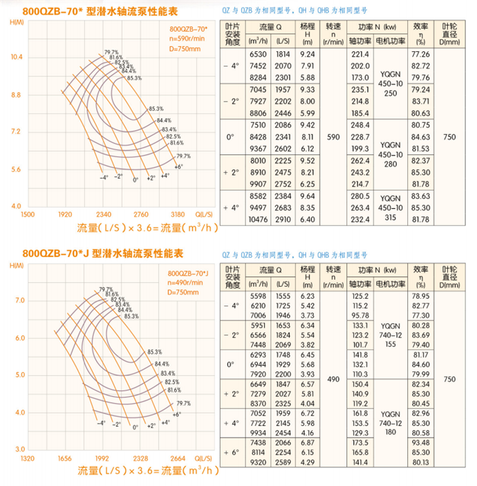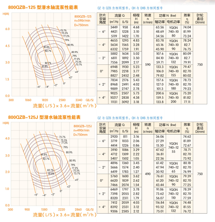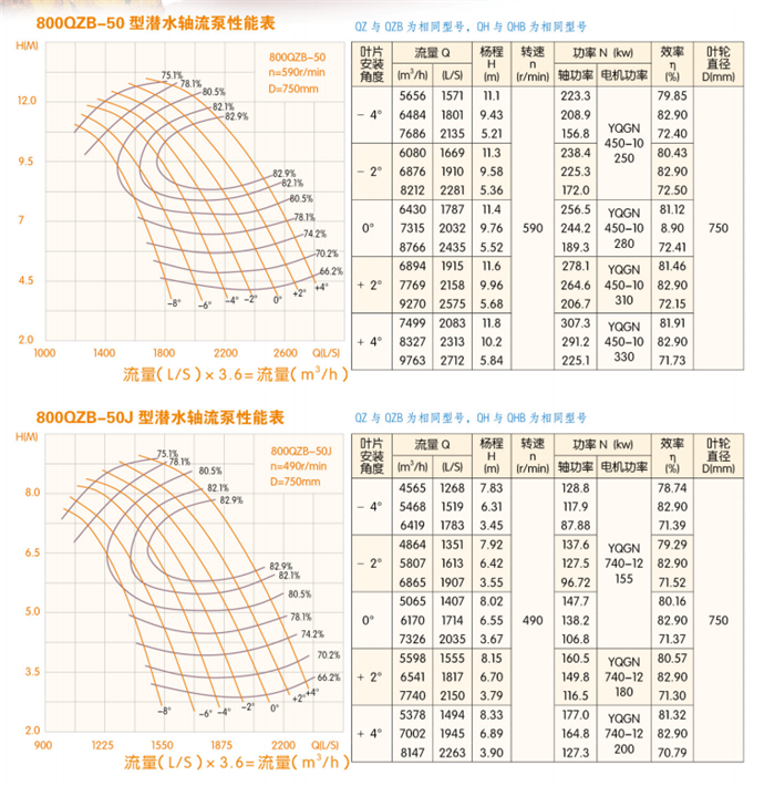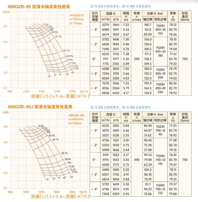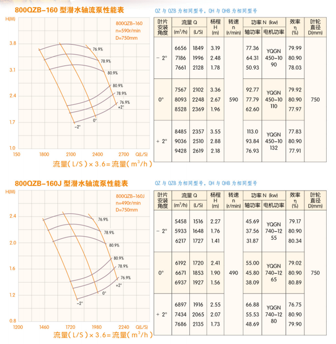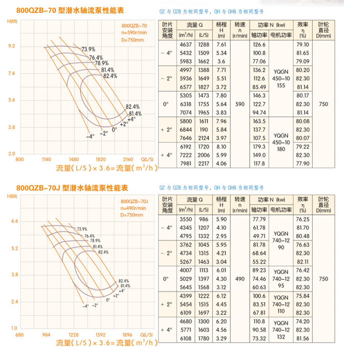 潛水軸流泵流量:QZB潛水軸流泵技術(shù)參數(shù):
