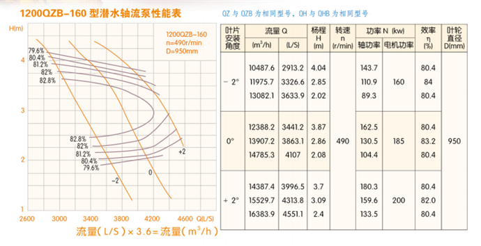 潛水軸流泵流量表:潛水軸流泵參數(shù):
