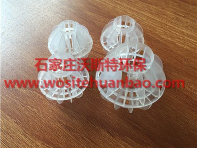 采用聚丙烯(PVC)塑料制成球狀,由兩個(gè)半球合成一個(gè)球形,每個(gè)半球上開有12個(gè)半扇形葉片,兩個(gè)半球的扇形葉片相互錯(cuò)開。該填料特點(diǎn)是比表面積大,空隙率較高。但是由于葉片數(shù)偏多,彼此間有遮蔽效應(yīng),不利于液體分布和潤(rùn)濕;液體大多在球體空心柱聚集,阻礙氣體暢通,因此阻力較大。此種填料多用于水處理工程,氣速高,葉片多,阻力??;比表面積大,可以充分解決氣液交換;具有阻力小,操作彈性大等優(yōu)點(diǎn)。