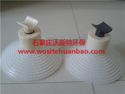沃斯特260防堵塞曝氣器是我公司新研制開(kāi)發(fā)的新一代曝氣設(shè)備。通過(guò)對(duì)氣流阻力和出孔氣泡直徑的縮小,提高曝氣器的運(yùn)行效力。本產(chǎn)品在設(shè)計(jì)初期著重考慮,在沒(méi)有設(shè)置專用止回裝置的前提下,如何在允許污水逆流的情況下設(shè)備不被堵塞。如何提高其氧轉(zhuǎn)移效力。防堵塞曝氣器主體部分由ABS分流器和倒傘型擴(kuò)散鐘罩組成。以氣泡運(yùn)行軌跡圖為依據(jù),空氣在擴(kuò)散上升的運(yùn)行過(guò)程中,經(jīng)過(guò)密布于分流器四周的細(xì)孔擠壓,形成大量均勻的微氣泡,微氣泡繼續(xù)向上運(yùn)動(dòng)過(guò)程中再與倒傘鐘罩上附屬的立體三角齒碰撞,進(jìn)一步的進(jìn)行切割。被強(qiáng)行擠壓、碰撞而分裂出的微氣泡在上升速度額定的情況下,與污水中的液項(xiàng)的接觸面自然增大,氧利用率得以提升。同時(shí)在倒傘鐘罩的項(xiàng)部阻隔和分流器的四層分割下,污水中的懸浮混合物在沉積的過(guò)程中被過(guò)濾隔離在設(shè)備之外。實(shí)現(xiàn)了在允許污水逆流的前提下,設(shè)備自身不被堵塞的開(kāi)發(fā)目的。
