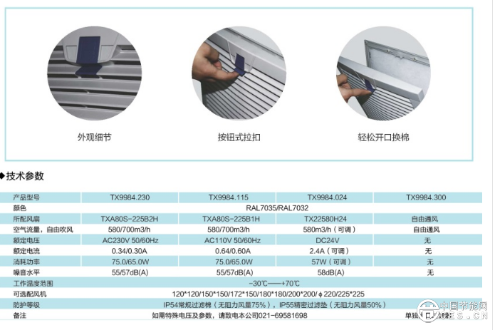 2、推拉式的旋鈕開關(guān),可以在不使用任何工具的前提下,輕松打開防雨百葉,進(jìn)行快速的過濾棉清洗及更換。