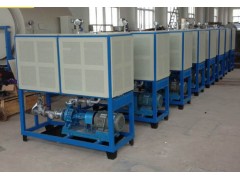 對(duì)于電加熱油爐,熱量是由浸入導(dǎo)熱油的電加熱元件產(chǎn)生和傳輸?shù)?,以?dǎo)熱油為介質(zhì),利用循環(huán)泵,強(qiáng)制導(dǎo)熱油進(jìn)行液相循環(huán),將熱量傳遞給用一個(gè)或多種用熱設(shè)備,經(jīng)用熱設(shè)備卸載后,重新通過循環(huán)泵,回到加熱器,再吸收熱量,傳遞給用熱設(shè)備,如此周而復(fù)始,實(shí)現(xiàn)熱量的連續(xù)傳遞,使被加熱物體溫度升高,達(dá)到加熱的工藝要求。