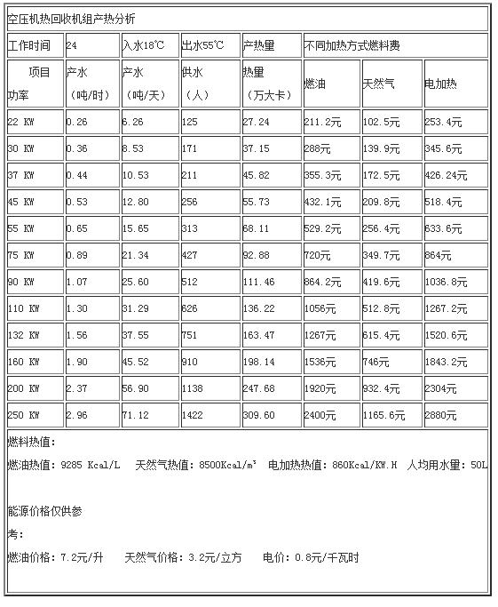 空壓機(jī)產(chǎn)生的熱能被熱能熱水機(jī)充分吸收并對(duì)冷水進(jìn)行加熱,同時(shí)空壓機(jī)得以降溫。充份利用這些浪費(fèi)的熱能有利于節(jié)能減排,降低工廠的運(yùn)營(yíng)成本,同時(shí)改善空壓機(jī)的運(yùn)行狀態(tài),提高產(chǎn)氣量,節(jié)約空壓機(jī)的耗電費(fèi)用。因此,利用這一浪費(fèi)的能源,已經(jīng)成為越來(lái)越多企業(yè)的共識(shí)。