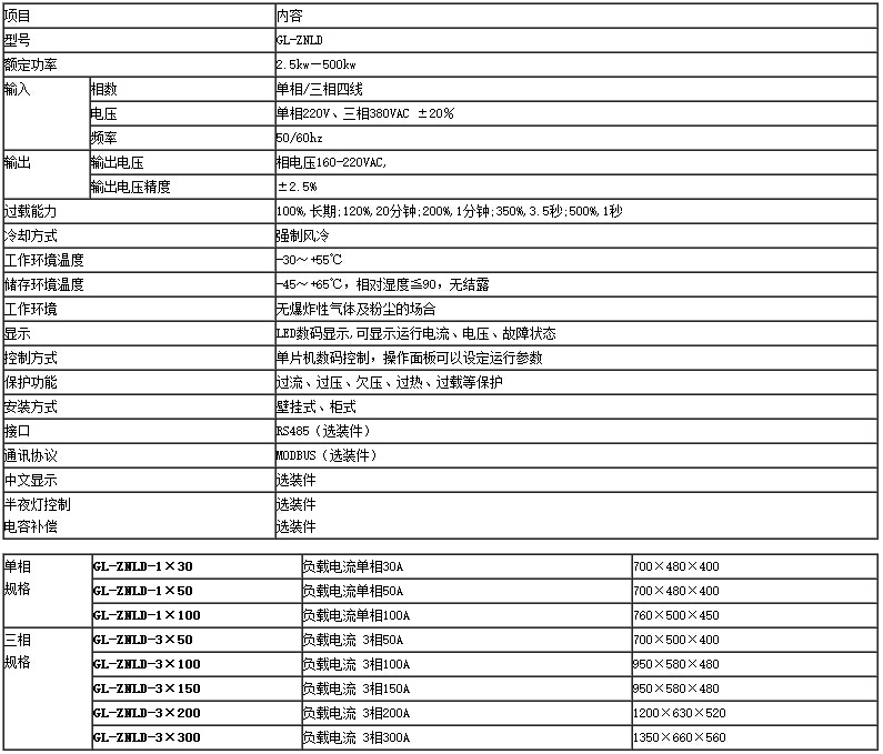 10、自動穩(wěn)壓、三相分調(diào)、中文顯示、通訊接口(選配功能)。