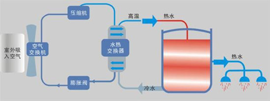 空氣源熱泵又稱熱泵熱水器,由熱泵吸收空氣熱源制取熱水,節(jié)能效率是電熱水器的4倍以上,比太陽能熱水器還要節(jié)能,是目前世界上最為先進(jìn)的節(jié)能環(huán)保熱水系統(tǒng)。