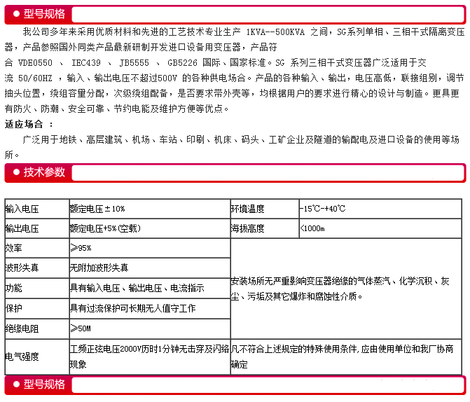 SBW三相全自動補償式電力穩(wěn)壓器 SBK三相干式變壓器不帶機箱  德威民變壓器 JBK BK DK控制變壓器  德威民機床控制變壓器 DG單相隔離變壓器  德威民DG單相隔離變壓器 行燈照明控制變壓器  德威民低壓照明控制變壓器 TDGC2單相調(diào)壓器  德威民單相調(diào)壓器 TSJA三相感應(yīng)調(diào)壓器  三相水泵實驗級感應(yīng)調(diào)壓器 SBW/DBW-SG系列單、三相全自動補償式電力穩(wěn)壓變壓器