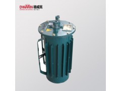 用于礦井中有爆炸危險(xiǎn)的場所。這種變壓器制成干式,它的進(jìn)出線是電纜通過出線套引出的。原邊的電壓有380伏、660伏多種;副邊電壓一般為133伏等、容量在100千伏安以上的隔爆型變壓器常與隔爆型開關(guān)箱組合成隔爆型成套移動(dòng)變電所。其輸出電壓有400伏,690伏和1200伏,以滿足礦井用電設(shè)備的需要。為了適應(yīng)坑道運(yùn)輸,要求變壓器結(jié)構(gòu)高度要低。這樣,鐵柱直徑可以偏大些,一般使用冷軋硅鋼片。100千伏安及以上者通常為H級(jí)絕緣。