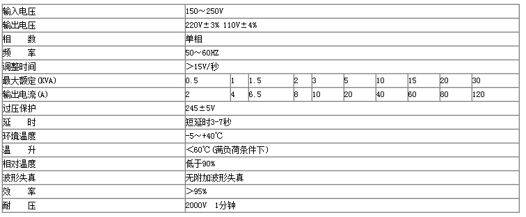 本穩(wěn)壓器體積小、效率高、波形失真小、調(diào)壓速度快、性能穩(wěn)定可靠、保護(hù)功能齊全,可長(zhǎng)期連續(xù)工作,根據(jù)用戶需要,可設(shè)欠壓、延時(shí)等保護(hù)功能。是家用電器和其它用電設(shè)備最合適的穩(wěn)壓電源。