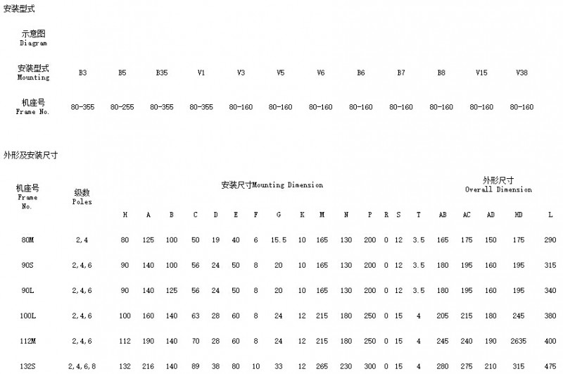 1)B3型機(jī)座帶底腳,端蓋上無凸緣,無尺寸M、N、P、R、S、T。