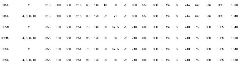4)H225-H355電機(jī)凸緣安裝孔S為8空均布。