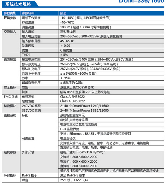 - ● 336V 系統(tǒng)滿足中國移動通信企業(yè)標(biāo)準(zhǔn)QB-H-008-2012《336V 直流電源系統(tǒng)》。