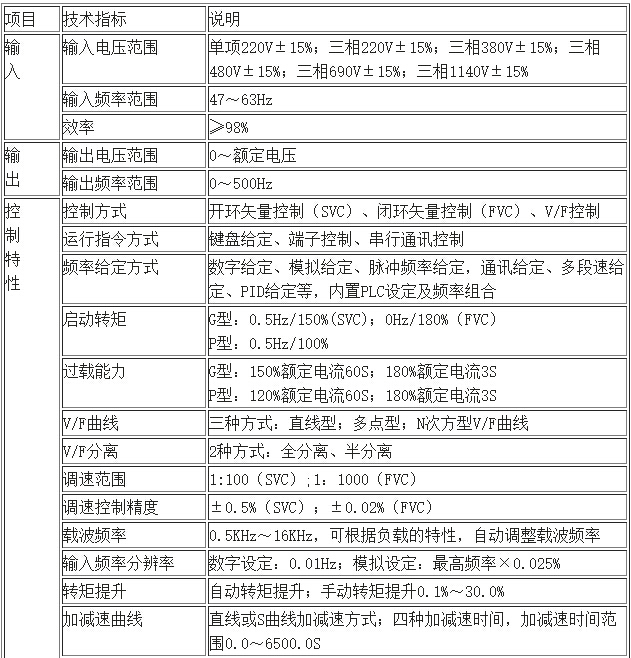 ◆ 控制方式:開環(huán)矢量控制(SVC)、閉環(huán)矢量控制(FVC)、V/F控制 ;