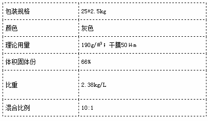 漆膜厚度:濕膜:80μm;干膜:50μm(無(wú)氣噴涂)