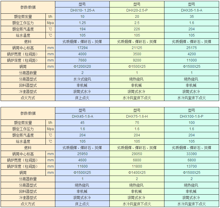 DHX10~100t/h工業(yè)循環(huán)流化床鍋爐、QXF29~168MW循環(huán)流化床鍋爐。