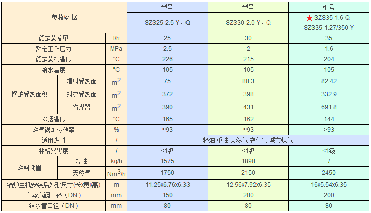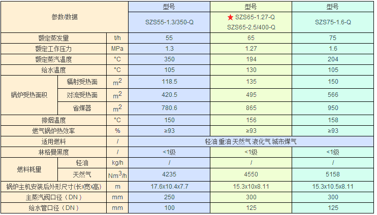 ★ SZS系列燃油(氣)蒸汽鍋爐主要特性參數(shù)表: