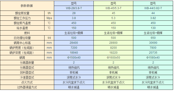 ★ WB系列循環(huán)流化床垃圾焚燒電站鍋爐主要特性參數(shù)表: