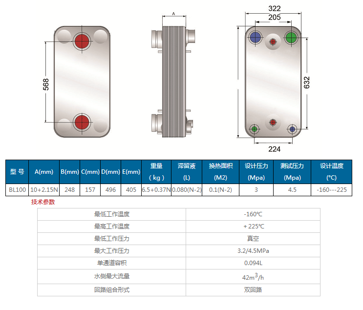 ·BL-210型釬焊板式換熱器為一款專為中央空調(diào)、工業(yè)冷水機(jī)組、大型熱泵系統(tǒng)設(shè)計(jì)開發(fā)的釬焊板式換熱器,在錐壓縮機(jī)和雙壓縮機(jī)回路中使用R22制冷劑,其換熱量范圍在30 ~300KW 的范圍。