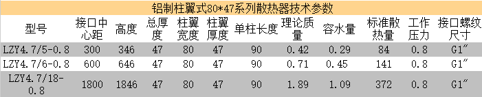 鋁制柱翼式80*47系列外觀方面:精加工,高品質(zhì),可以任意家裝匹配。體積小,重量輕,施工安裝便捷:優(yōu)秀的熱工性能,傳熱快、一般通熱水后在15分鐘內(nèi)即可達(dá)到標(biāo)準(zhǔn)散熱量,其傳熱速度遠(yuǎn)比一般散熱器高。耐水壓高、壽命長(zhǎng)。性價(jià)比高,在相同的面積內(nèi),采用鋁制散熱器與鋼制散熱器費(fèi)用基本差不多,但鋁制散熱器的美觀、大方是鋼制散熱器不可相比的。
