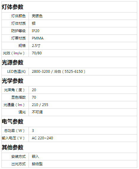 外觀簡潔,配光精準(zhǔn)。 外觀簡潔,性能良好;專業(yè)配光,光斑精準(zhǔn);開關(guān)電源,性能穩(wěn)定可靠;燈頭0~25度任意調(diào)整,投光靈活;高效節(jié)能,環(huán)保長壽,超高性價(jià)比。外形尺寸:Φ86*H42 mm,開孔尺寸:Φ70 mm。