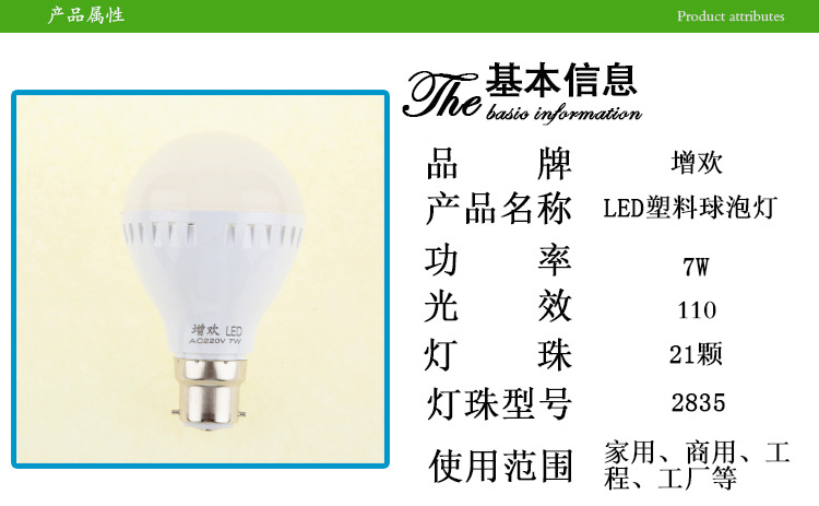 7W卡口LED燈泡LED塑料球泡燈LED節(jié)能燈