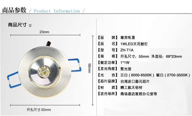 ZH-T1A天花射燈1WLED天花燈室內(nèi)照明燈