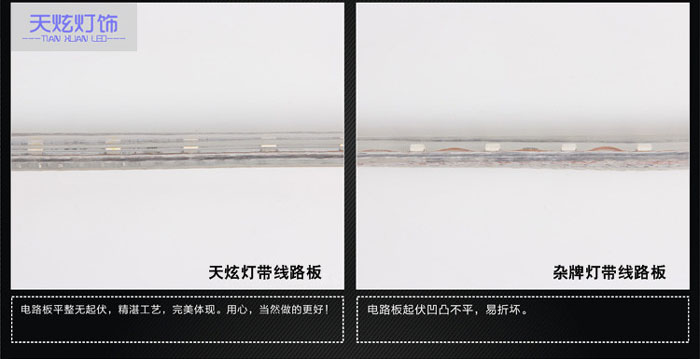 6、采用臺(tái)灣進(jìn)口5050貼片,具有長壽命,高亮度,低光衰等特性,適合各類裝修。