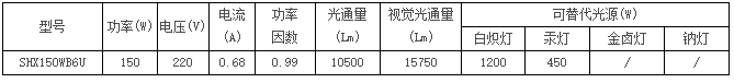 三和祥牌分體式大功率節(jié)能燈技術(shù)參數(shù)表: