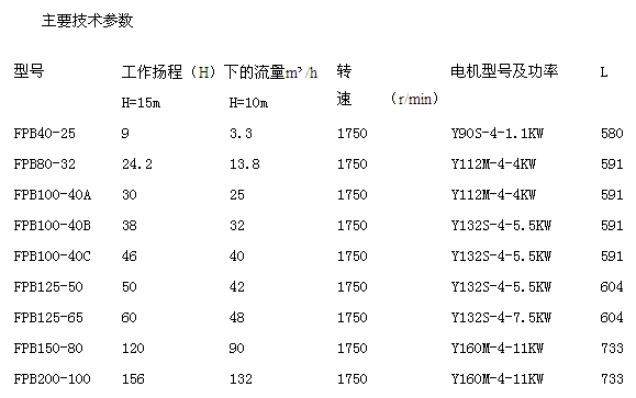2、FPB型濾液泵過流部件材料:葉輪為鑄鋼或ZGlCrl8Ni9Ti;側(cè)板、泵體等為HT200或ZGlCrl8Ni9Ti,選型時(shí)由用戶自定