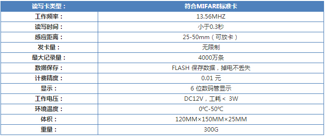n 節(jié)電設(shè)計,設(shè)備在沒有讀到卡或沒有按鍵操作情況下30分鐘自動斷電,讀卡或按鍵后自動啟動;