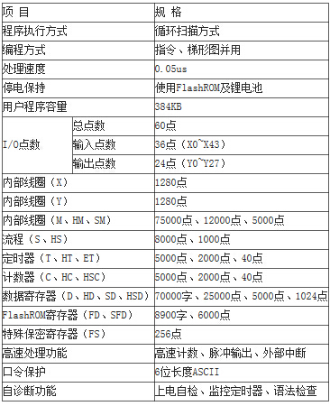 支持高速計(jì)數(shù)、外部中斷、電子凸輪、C語言編輯功能塊、I/O點(diǎn)的自由切換、MODBUS通訊、X-NET現(xiàn)場(chǎng)總線等功能