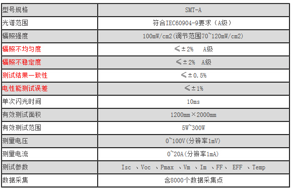 •模擬器光源光譜范圍符合IEC60904-9光譜輻照分布A級要求