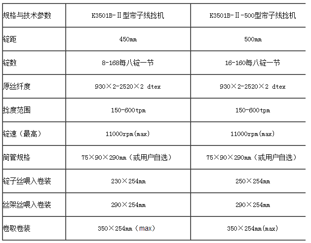 K3501B系列簾子線直捻機(jī)主要用于錦綸、芳綸、滌綸、人造絲等化纖長絲生產(chǎn)對(duì)稱結(jié)構(gòu)的雙股簾子線和工業(yè)用線,該機(jī)具有卷裝大、能耗低、用工少,成品簾子線品質(zhì)高等特點(diǎn),是短流程生產(chǎn)對(duì)稱兩股絲簾子線和工業(yè)用線的理想機(jī)型。