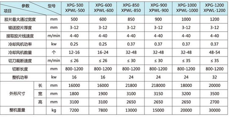 本機(jī)為密煉機(jī)或捏煉機(jī)的下輔機(jī),于雙螺桿擠出壓片機(jī)或開煉機(jī)等配套使用,對(duì)膠片進(jìn)行輸送、涂隔離劑、風(fēng)冷、干燥、裁斷及折疊等連續(xù)生產(chǎn)作業(yè)。