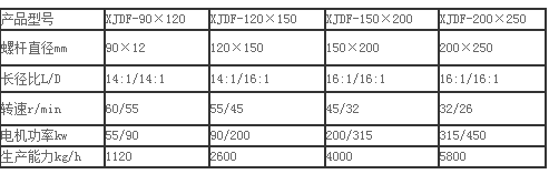 雙復(fù)合銷釘式冷喂料橡膠擠出機(jī)組主要技術(shù)參數(shù):