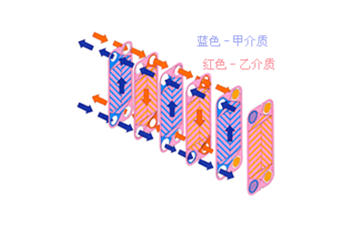 原理:板式換熱器由傳熱波紋板片及框架組成。板片由螺栓夾緊在固定壓緊板及活動壓緊板之間,通過板片溝槽變化和密封方式組合,在換熱器內(nèi)部構(gòu)成了冷熱介質(zhì)相間的許多流道,板與板之間用橡膠密封。壓緊板上有本設備與外部連接的接管。多種優(yōu)質(zhì)金屬材料薄板和橡膠密封膠墊可滿足不同的腐蝕介質(zhì)和溫度。換熱器內(nèi)部由兩種不同溫度的流體通過金屬板壁進行間接熱交換,板片上人字形波紋能增加對流體的擾動,使流體在低速下能達到湍流狀態(tài),獲得高的傳熱效果。并采用特殊密封結(jié)構(gòu),保證兩種流體介質(zhì)不會串漏。
