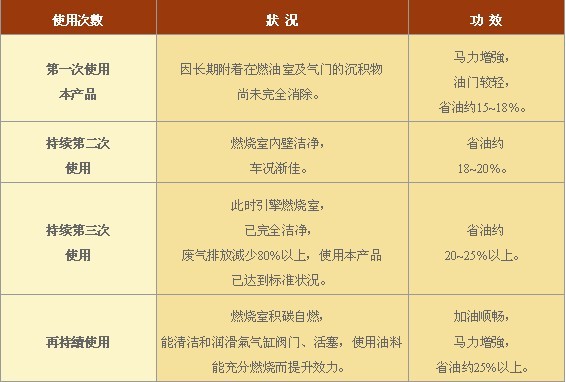 *因長(zhǎng)期使用,可保證引擎,更可以節(jié)省無法預(yù)估的引擎維修的費(fèi)用。省油效果,依各車況及行車習(xí)慣而有所差異。