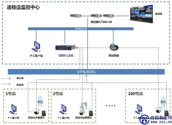 因連鎖超市分布分散,具有不利安全防范和不便管理的特點(diǎn),在進(jìn)行視頻監(jiān)控設(shè)計(jì)方案時(shí)則主要解決幾個(gè)方面的問題: