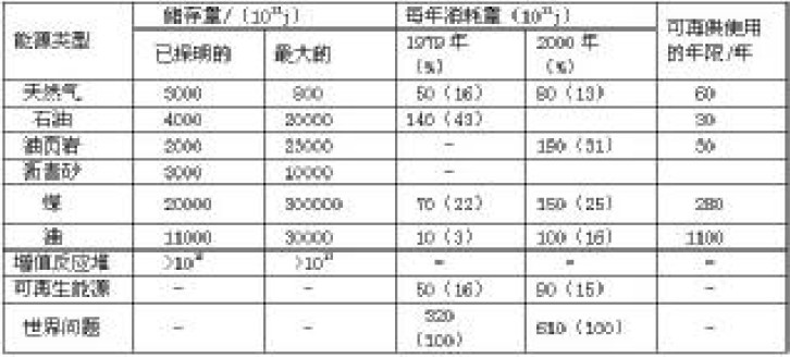 表1各類型能源、消耗以及可再供使用的年限的預(yù)測(cè)值